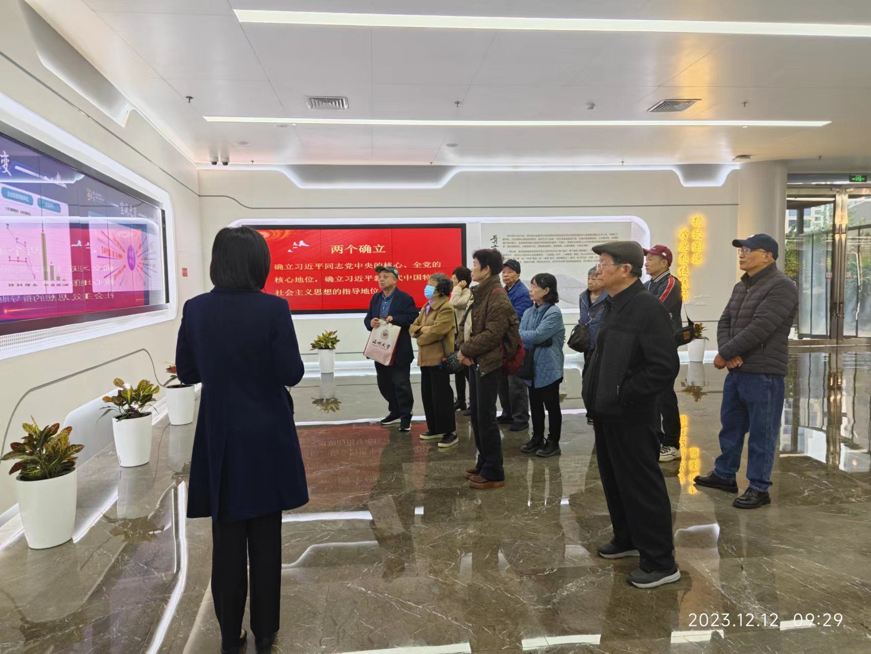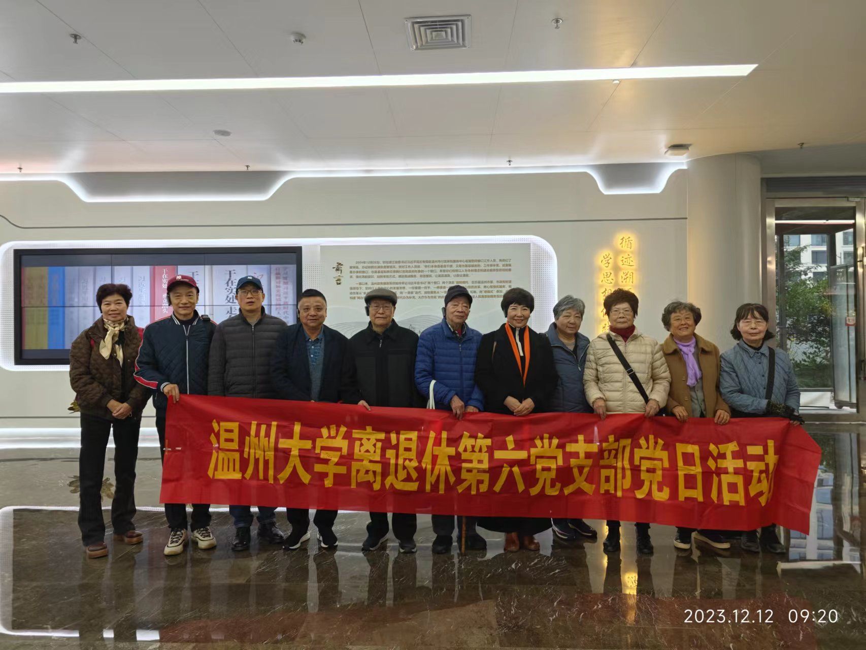 12月12日上午,離退休第六黨支部11位老黨員,在支部書記吳小宇帶領(lǐng)下,赴溫州市民中心“循跡溯源”示范點(diǎn)現(xiàn)場研學(xué)。這是支部對標(biāo)主題教育總要求開展的第三次線下活動。